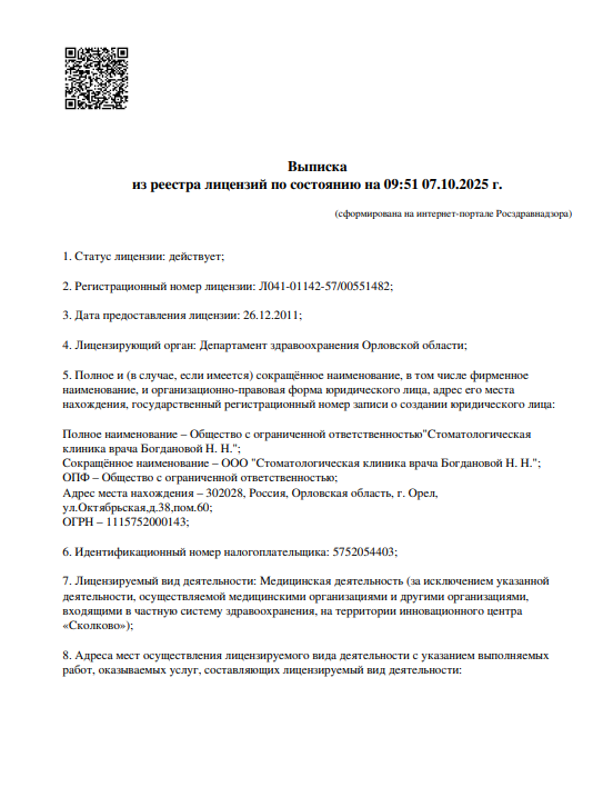 Диапазоны цен на приём врачей и специалистов, услуги и диагностику в Стоматология доктора Богдановой в Орле.